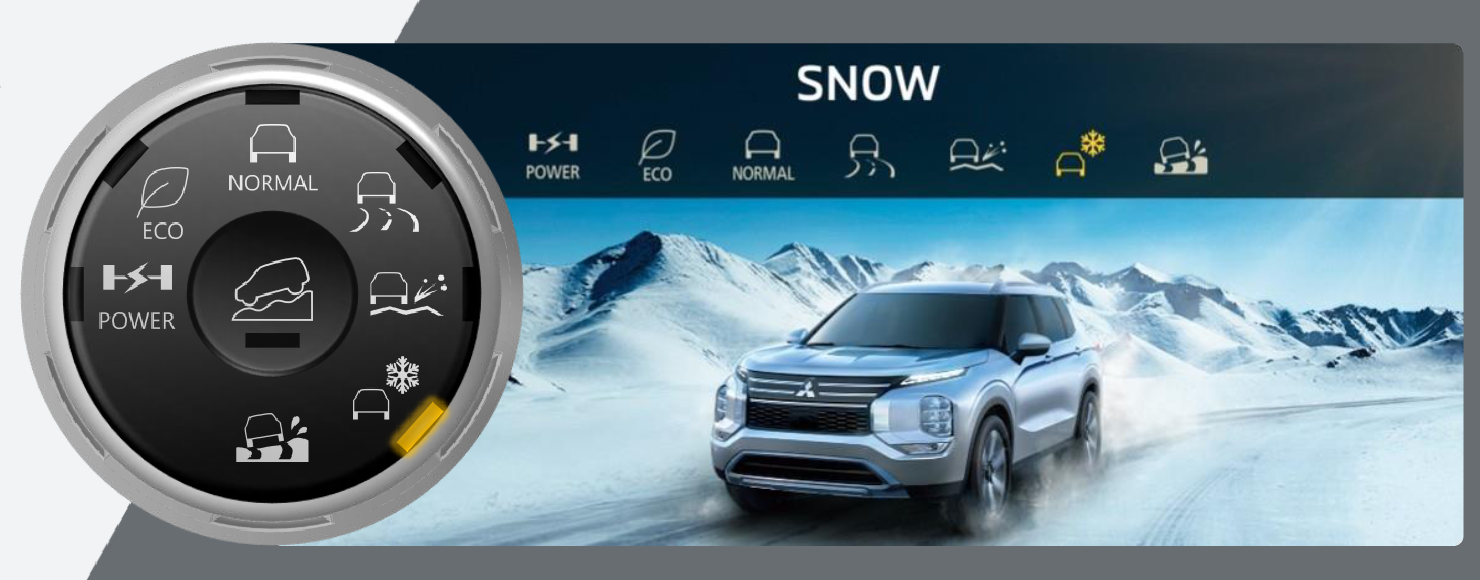 O S-AWC permite uma experiência de condução segura e confiante em todas as condições, podendo o condutor selecionar entre 7 modos de condução diferentes.